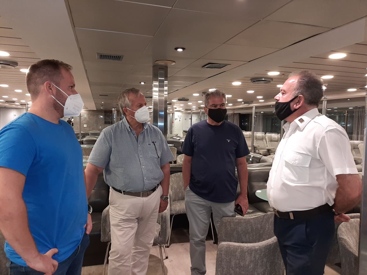 Ο Δήμαρχος, μαζί με τον πρόεδρο του ΔΛΤ, Μιχάλη Μπούκη, ήταν στην προβλήτα να υποδεχτούν το πλοίο και να ξεναγηθούν στο εσωτερικό του, ενώ στη συνέχεια στη σελίδα της παράταξης του Δημήτρη Διακομιχάλη, αναρτήθηκαν φωτογραφίες και “διθυραμβικά” σχόλια, για μια ακόμη επιτυχία σε σχέση με την ακτοπλοϊκή σύνδεση της Καλύμνου.
