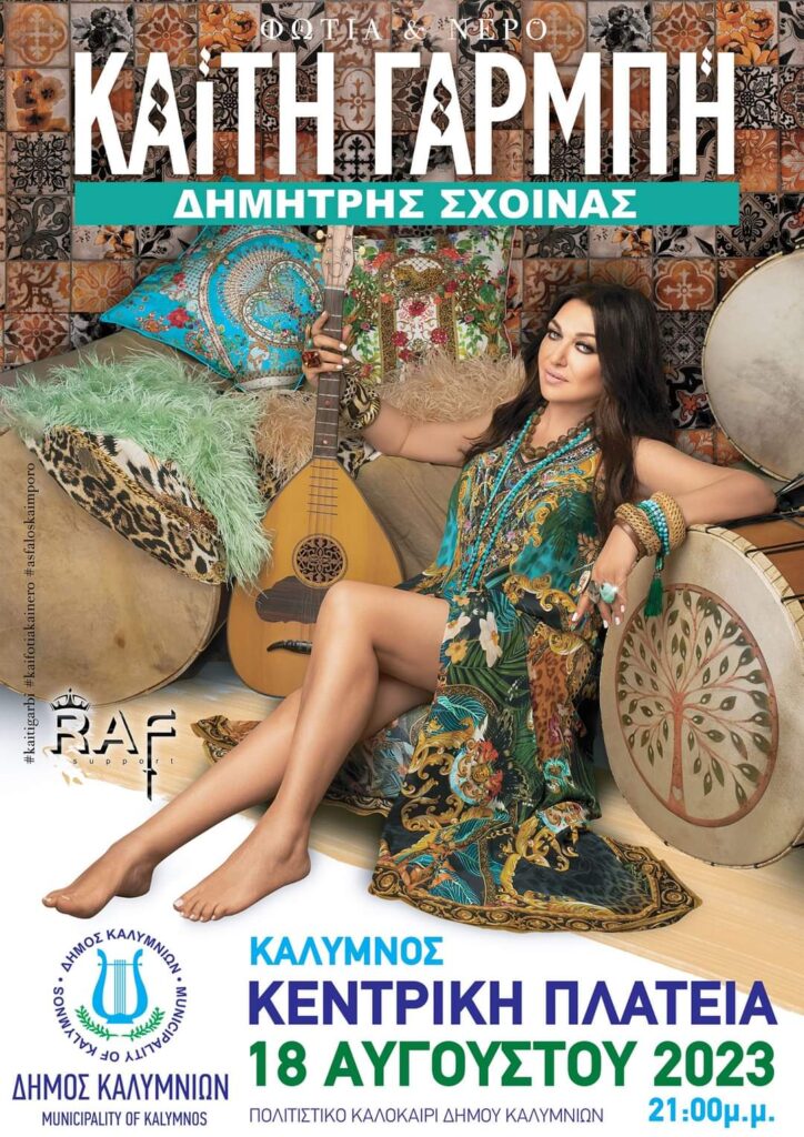 Αύριο στις 21:00 στην κεντρική πλατεία της Καλύμνου, θα γίνει συναυλία με τη γνωστή τραγουδίστρια Καίτη Γαρμπή, που διοργανώνει ο Δήμος στα πλαίσια του Πολιτιστικού Καλοκαιριού 2023