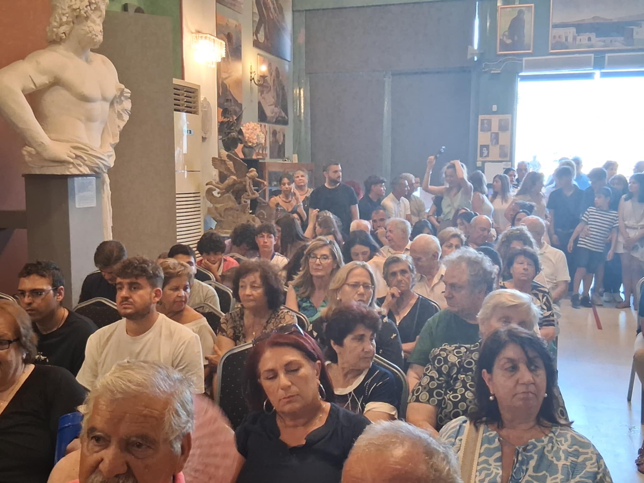 Μια γεμάτη αίθουσα του ισογείου του Πνευματικού Κέντρου Καλύμνου, έδειξε ότι η υπόθεση της επιστροφής των Χάλκινων Αρχαιοτήτων, του Έφιππου Ηγεμόνα, είναι πλέον υπόθεση όλης της Καλύμνου