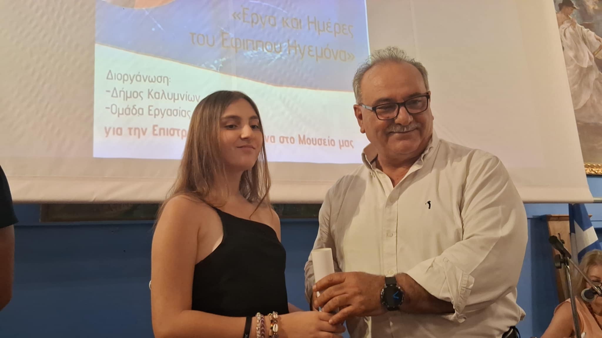 “Ο Έφιππος Ηγεμόνας στη σκιά της προδοσίας”, ο τίτλος του ομαδικού διηγήματος, που βραβεύτηκε στην χθεσινή εκδήλωση, ένας τίτλος που βγήκε μέσα από την νεανική συνείδηση, μέσα από τον θυμό και την οργή των παιδιών, που αισθάνονται την προδοσία να βαραίνει στις ψυχές τους, για την μεγάλη υπόθεση της Καλύμνου, για τα “Ελγίνεια της Καλύμνου”