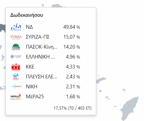 Εκλογές 2023: Αποτελέσματα στα Δωδεκάνησα στα 70 από 403 εκλογικά τμήματα