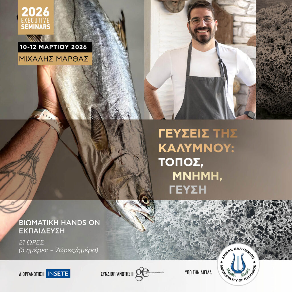 Το τριήμερο 10–12 Μαρτίου πραγματοποιείται στην Κάλυμνο μια σημαντική δράση βιωματικής γαστρονομικής εκπαίδευσης που διοργανώνεται από το INSETE και την Gastronomy Essentials με τον Καλύμνιο Chef Μιχάλη Μάρθα, υπό την αιγίδα του Δήμου Καλυμνίων.