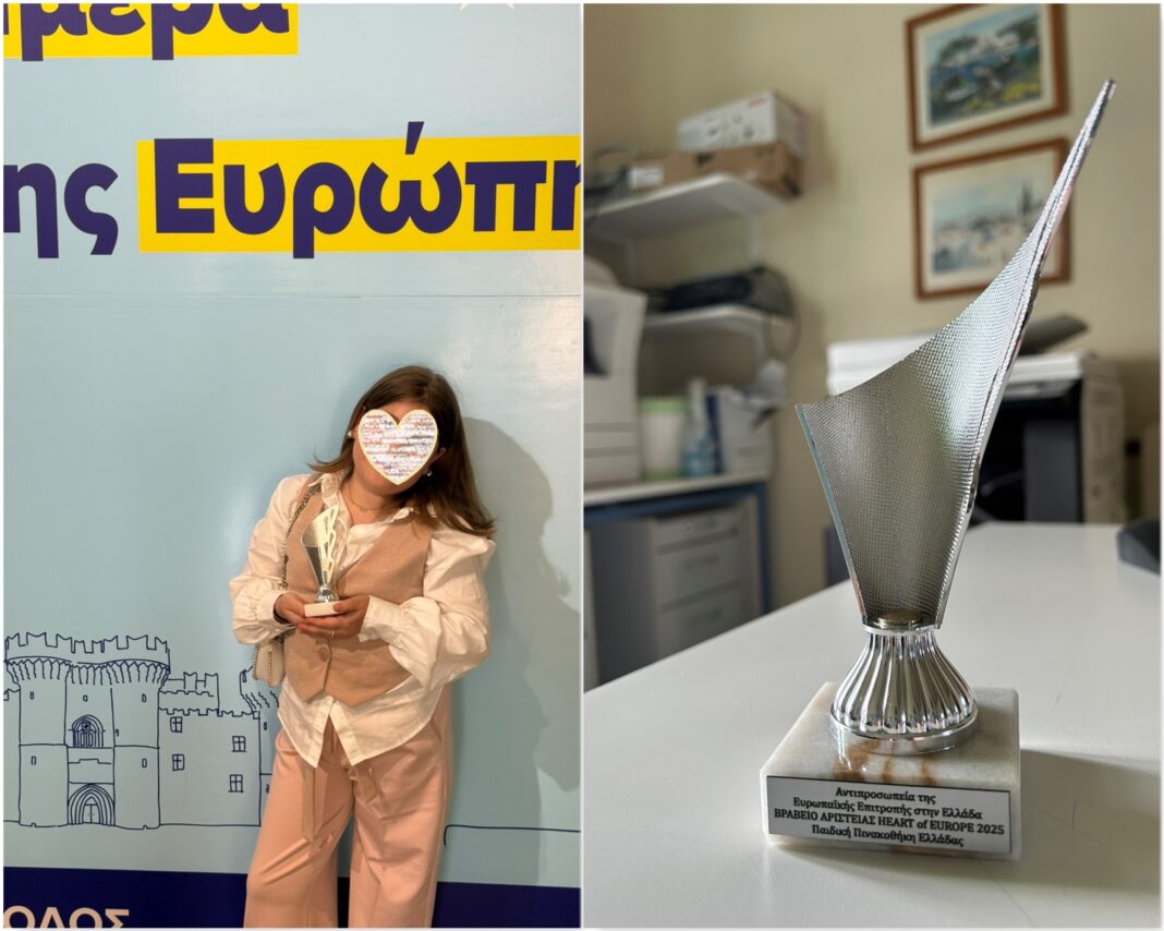 Η μαθήτρια του 5ου Δημοτικού Σχολείου πόλεως, Εμμανουέλα Παππά, διακρίθηκε στον Μαθητικό Καλλιτεχνικό Διαγωνισμό «HeART of Europe», στα πλαίσια των εορτασμών για την Ημέρα της Ευρώπης 2025, με την ζωγραφιά της και παρέλαβε το βραβείο αριστείας από την Ευρωπαϊκή Επιτροπή στην Ελλάδα, στην ειδική τελετή.