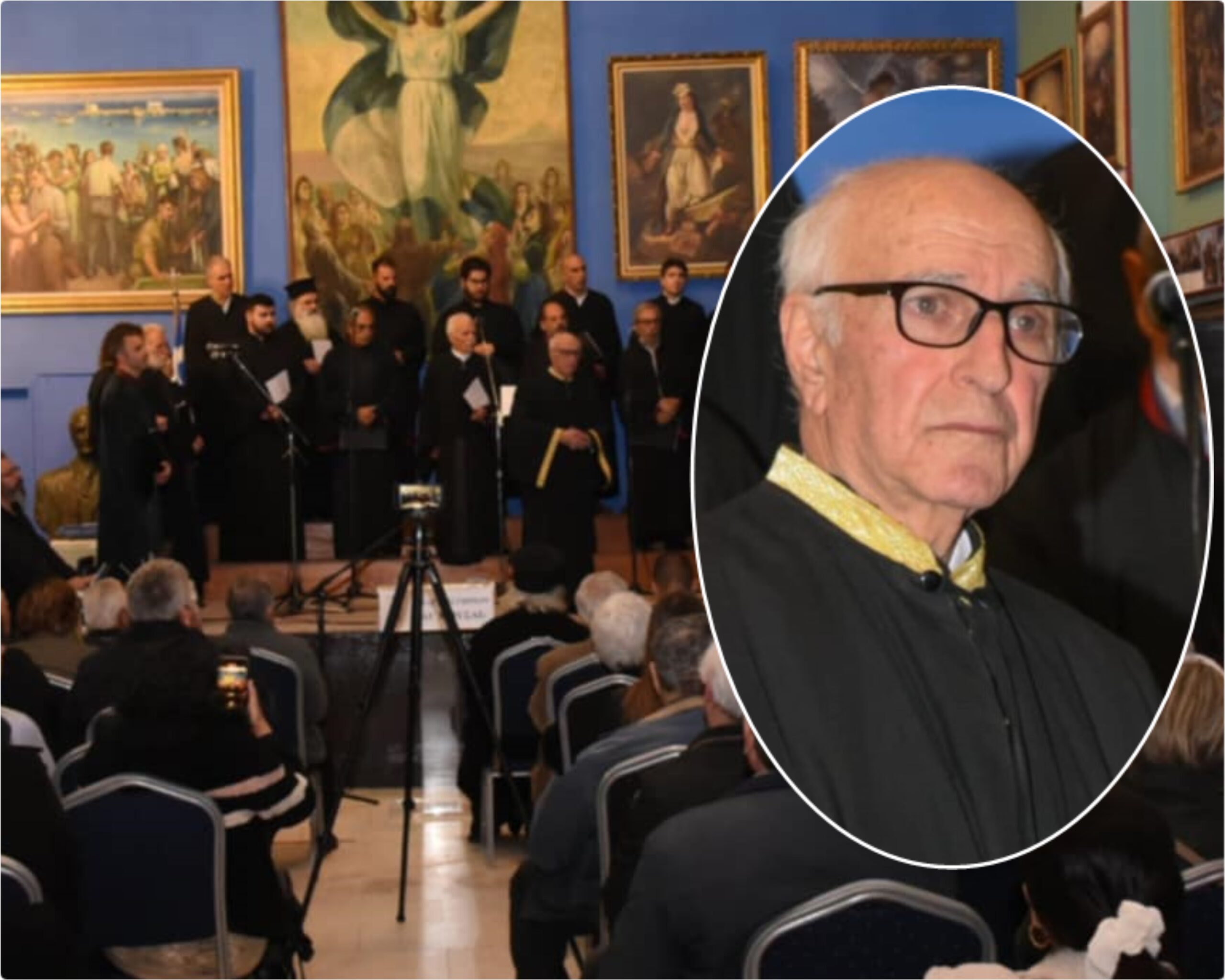 Στην κατάμεστη αίθουσα του Πνευματικού Κέντρου, η Χωρωδία των Ιεροψαλτών Καλύμνου, απέδοσε με μοναδικό τρόπο και σε πρώτη πανελλήνια εκτέλεση τους “15σύλλαβους ύμνους της παλαιάς μελοποιίας, με θέμα το θρήνο της Παναγίας μπροστά στο Σταυρό“, που διήυθυνε με μοναδικό τρόπο όπως πάντα, ο  Άρχων Μαϊστωρ τ. Μ.τ.Χ.Ε. Γεώργιος Ι. Χατζηθεοδώρου και παρουσίασε ο πρ. Πρόεδρος του Αναγνωστηρίου Παναγιώτης Γιαμαίος, υπό την αιγίδα της Ι.Μητροπόεως. Στον Γεώργιο Χατζηθεοδώρου, μέσα σε κλίμα συγκίνησης, που ήταν η τελευταία επίσημη παρουσία του στη θέση του χοράρχη της Χωρωδίας Ιεροψαλτών Καλύμνου, απενεμήθη εικόνα του Αγίου Σάββα, από τον πρόεδρο του Αναγνωστηρίου, που διοργάνωσε την εκδήλωση, Παναγιώτη Πιζάνια, για την προσφορά του στη Βυζαντινή και παραδοσιακή μουσική και αγιογραφία.