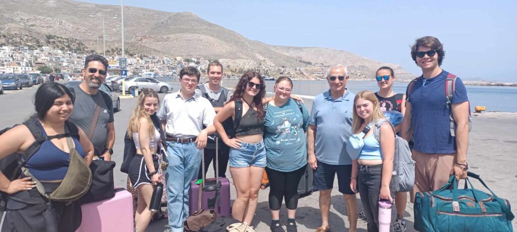 Στο λιμάνι την ώρα που αναχωρούσαν για να συνεχίσουν τις επισκέψεις τους στα νησιά της περιοχής οι φοιτητές από το Πανεπιστήμιο St. Petersburg του Ταρπον Σπρινγκς της Φλώριδα των ΗΠΑ, βρέθηκε ο φακός του Παλμού της Καλύμνου, τους οποίους συνόδευε ο τ. Δήμαρχος της πόλης και αντιπρόεδρος του ΔΣ Καλύμνου, Χρυσόστομος Αλαχούζος.