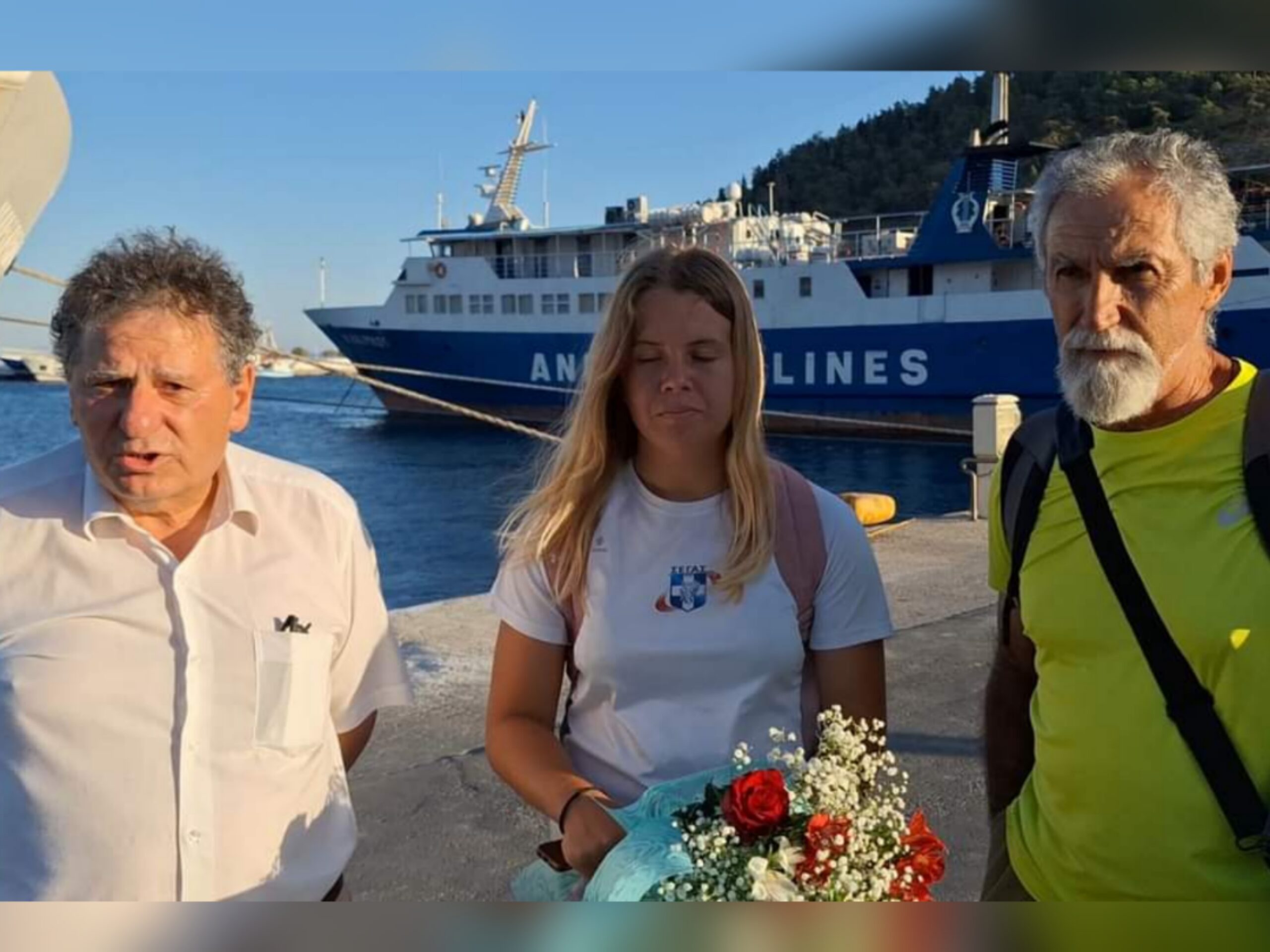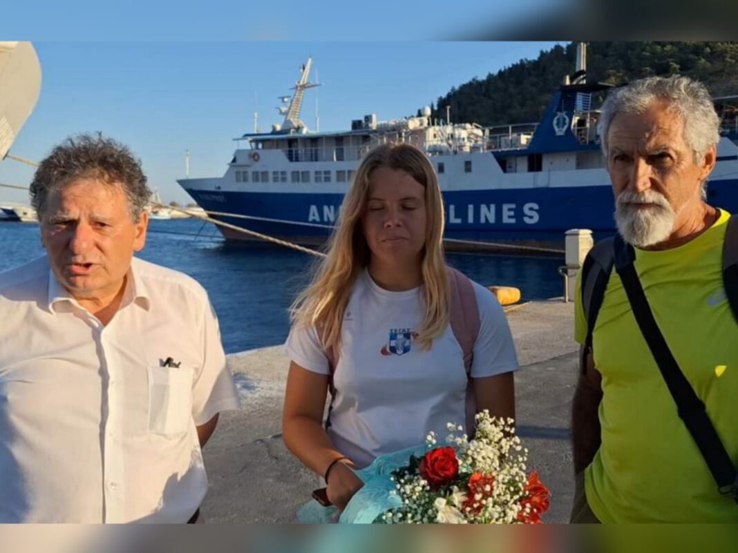 Η Ειρήνη Μαρίνου , συνοδεύονταν από τον προπονητή της, Ξενοφώντα Κουτελλά, που ήταν δίπλα της σ’ αυτή τη σκληρή προσπάθεια, ενώ στο λιμάνι τους υποδέχτηκαν γεμάτοι περηφάνια ο πρόεδρος του ΑΣ “Καζώνης – Κάλυμνος 2000”, Γιώργος Ρούσσος και η μητέρα της, που και εκείνη είχε το δικό της μερίδιο στη χαρά για την σπουδαία επιτυχία του παιδιού της.