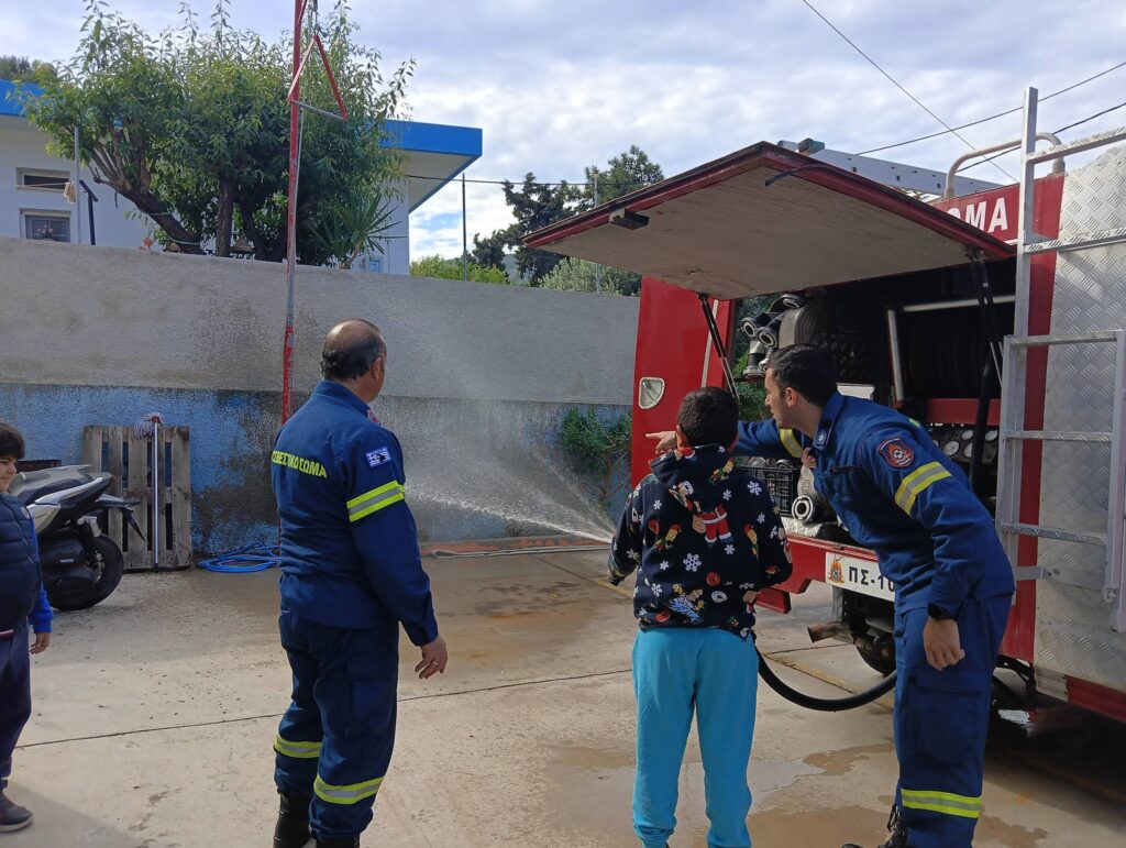 Στις εγκαταστάσεις του Εθελοντικού Πυροσβεστικού Σταθμού Β’ Τάξης Καλύμνου, βρέθηκαν οι δύο μαθητές του Δημοτικού Σχολείου της Τελένδου, ο Σάββας και ο Κυριάκος, μαζί με τον δάσκαλό τους, Στάθη Μαστροκούκο, σε μια βιωματική δράση ενημέρωσης και ευαισθητοποίησης των παιδιών σε θέματα πυρασφάλειας και πρόληψης κινδύνων.
