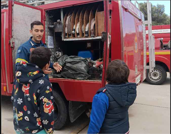 Τα παιδιά είχαν μια μοναδική εμπειρία για να μυηθούν στις βασικές γνώσεις γύρω από την σαφάλεια της καθημερινότητας, που με μεγάλη προθυμία παρουσιάστηκαν από τον Διοικητή του Κλιμακίου, Ανθυποπυραγό (ΠΣ) Θεόδωρο Κυτίδη και τους συνεργάτες του, στους δύο μαθητές της Τελένδου.