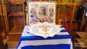 Η τελετή έγινε, χοροστατούντος του Μητροπολίτη, κ. Παϊσίου και παρόντες ήταν πολύς κόσμος και οι τοπικές αρχές, μεταξύ αυτών, ο Δήμαρχος, Γιάννης Μαστροκούκος, ο Έπαρχος, Μανώλης Μουσελλής, ο πρόεδρος του Δ.Σ., Δημήτρης Μαραγκός, ο αντιδήμαρχος Γιάννης Θεοφιλίδης, ο διοικητής του 5/42 Συντάγματος και ο διοικητής του Νοσοκομείου Καλύμνου.