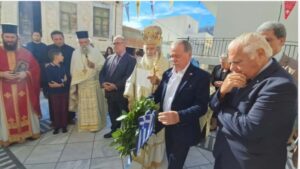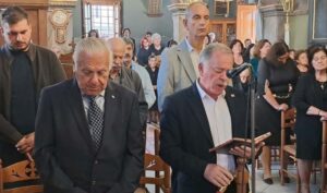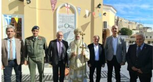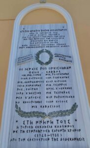 Μεατά την θεία λειτουργία, τελέστηκε επιμνημόσυνη δέηση μπροστά στη μαρμάρινη αναμνηστική πλάκα που βρίσκεται στον εξωτερικό τοίχο του Ναού, όπου είναι χαραγμένα τα ονόματα των κληρικών.