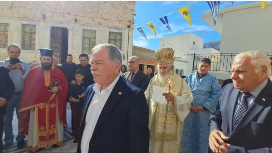 Η τελετή έγινε, χοροστατούντος του Μητροπολίτη, κ. Παϊσίου και παρόντες ήταν πολύς κόσμος και οι τοπικές αρχές, μεταξύ αυτών, ο Δήμαρχος, Γιάννης Μαστροκούκος, ο Έπαρχος, Μανώλης Μουσελλής, ο πρόεδρος του Δ.Σ., Δημήτρης Μαραγκός, ο αντιδήμαρχος Γιάννης Θεοφιλίδης, ο διοικητής του 5/42 Συντάγματος και ο διοικητής του Νοσοκομείου Καλύμνου.