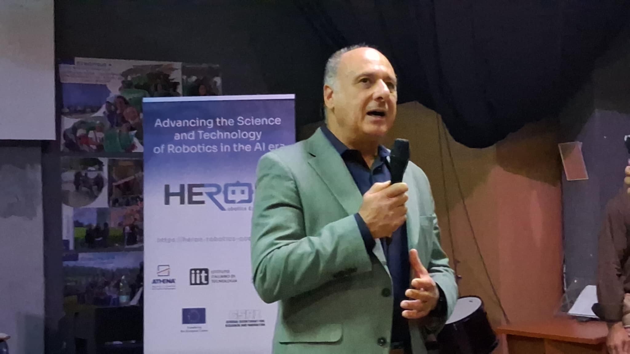 Ο καθηγητής, μαζί με τις συνεργάτιδές του, Δρ. Νίκη Ευθυμίου, ερευνήτρια του Ινστιτούτου Ρομποτικής ΕΚ Αθηνά, και Ελένη Μπέη-Σοφούλη από το τμήμα Εκπαίδευσης και Επικοινωνίας, παρουσίασαν στους μαθητές τις σύγχρονες εφαρμογές της ρομποτικής και της τεχνητής νοημοσύνης, εξηγώντας πώς αυτές μπορούν να συμβάλουν στην κοινωνική ευημερία και την πρόοδο της χώρας.