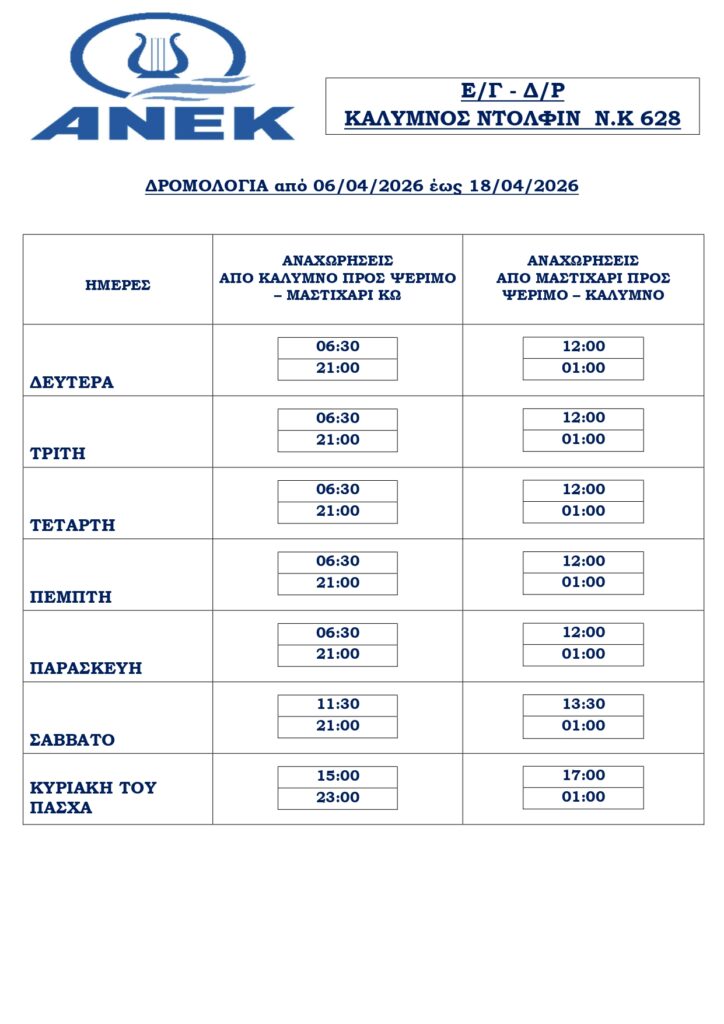 Home Προτεινόμενα Άρθρα Τα δρομολόγια του “Κάλυμνος Ντόλφιν” από 6-8 Απριλίου