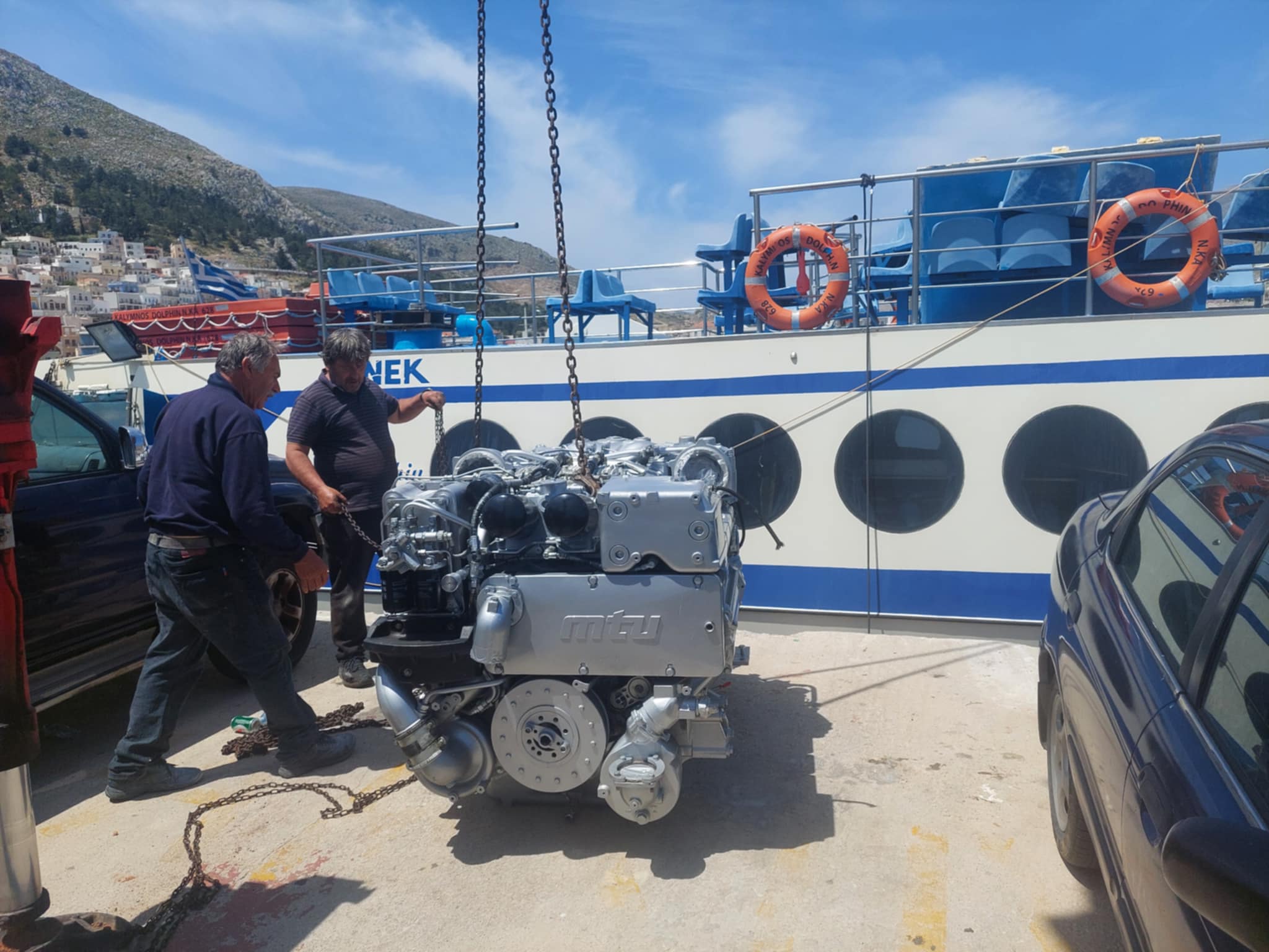 Όπως είχε δημοσίευσει ο Παλμός της Καλύμνου στις 2 Μαϊου, σήμερα Δευτέρα 5 Μαϊου μεταφέρθηκε και ξεκίνησε η διαδικασία τοποθέτησης της μιας μηχανής του σκάφους της ΑΝΕΚ, “Κάλυμνος Ντόλφιν”, η οποία επέστρεψε επισκευασμένη από το εξουσιοδοτημένο συνεργείο της εταιρείας MTU.