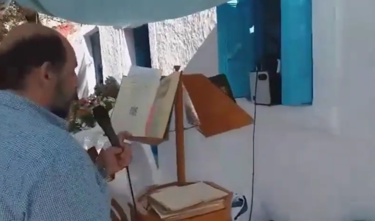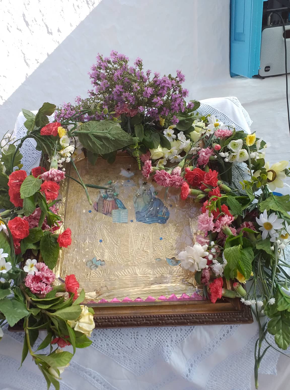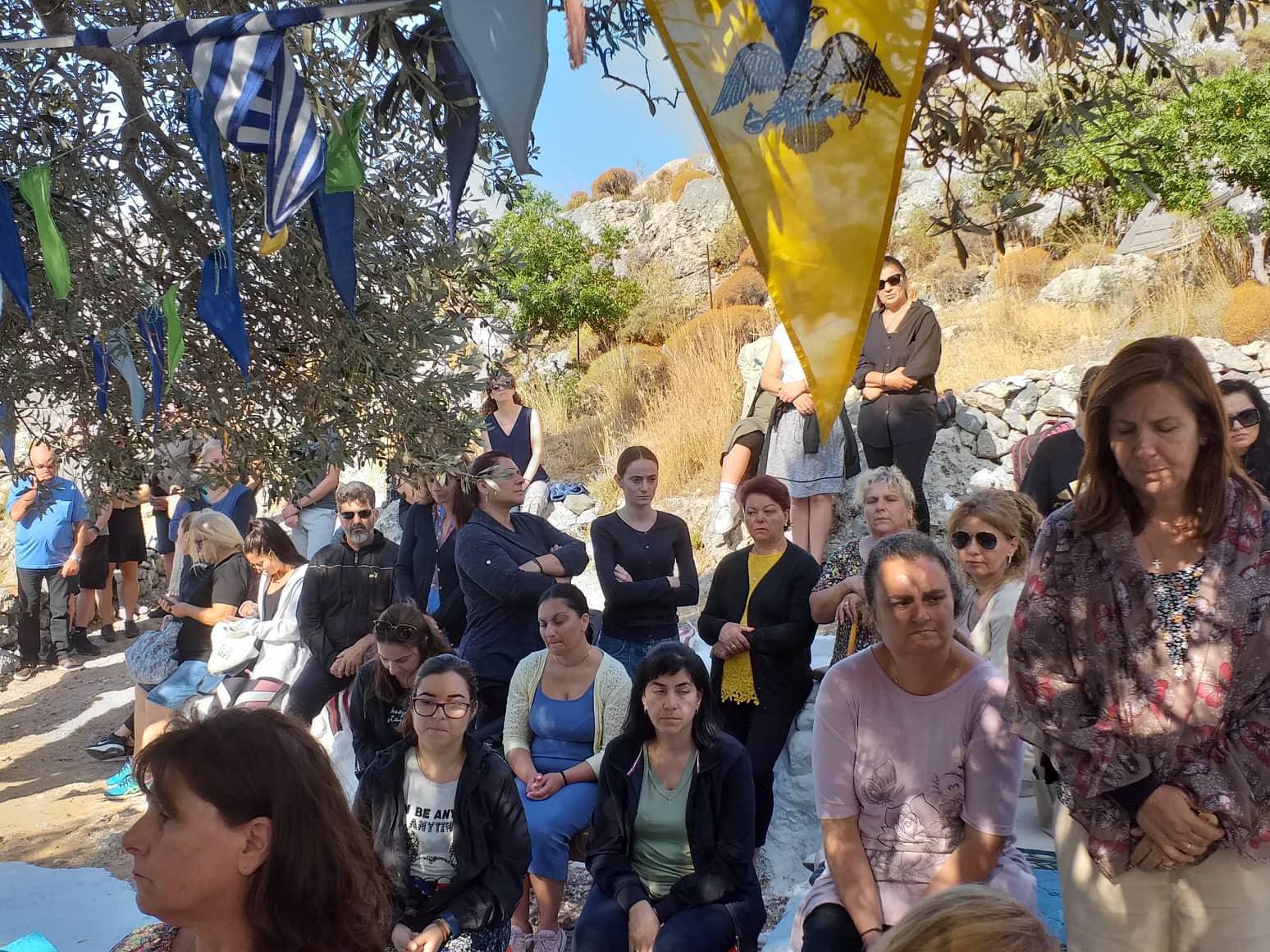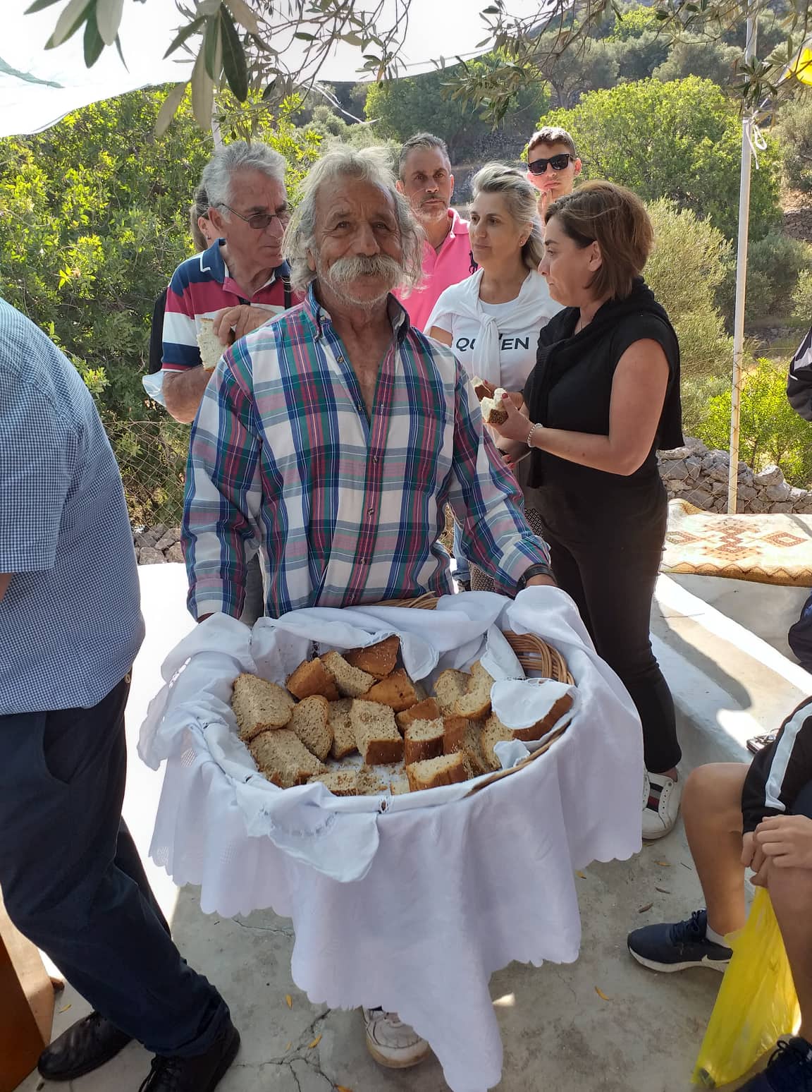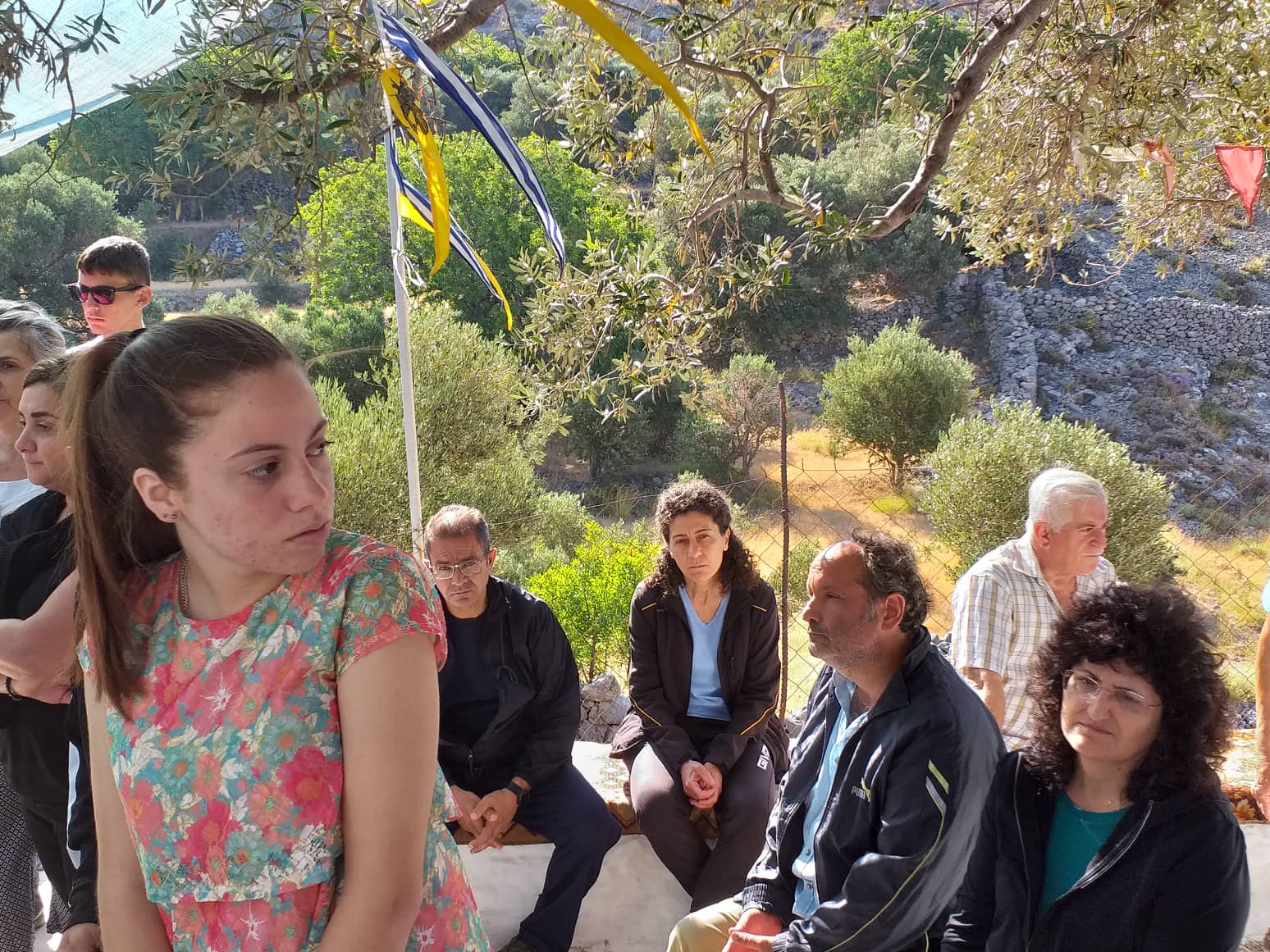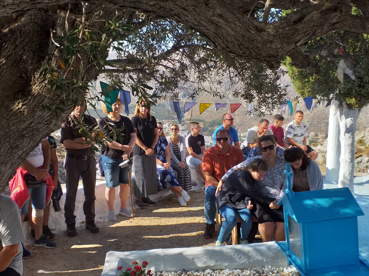 Οι σκηνές που κατέγραψε ο φακός του Νικόλα Μακαρούνα μοναδικές, καθώς μέσα σ’ αυτό το ιδιαίτερο τοπίο, με την πρέπουσα κατάνυξη και την παρουσία πολύ κόσμου, τελέστηκε η Θεία Λειτουργία του Αγίου Πνεύματος. Μετά το πέρας της Θείας Λειτουργίας, οι πιστοί δέχονται το παραδοσιακό τραταρισμα με καφέ, ψωμί ζυμωτό και Καλύμνικο τυρί, που παράγει η οικογένεια Κλήμη, με την ίδια παραδοσιακή συνταγή εδώ και πολλές δεκαετίες.